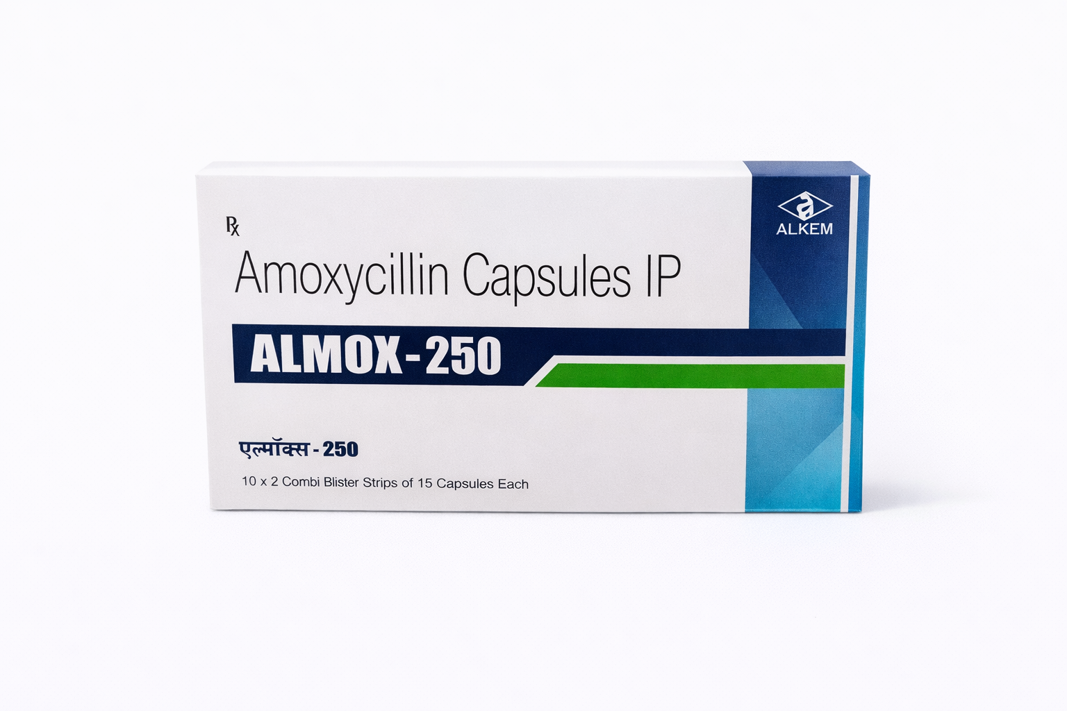 Almox 250mg is formulated with Amoxicillin Trihydrate, a beta-lactam antibiotic that interferes with bacterial cell wall synthesis, leading to bacterial death.
