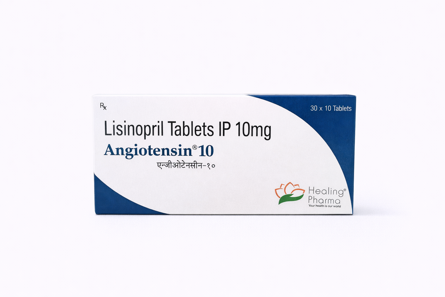 Angiotensin 10 contains Lisinopril 10 mg, an ACE inhibitor used to manage high blood pressure, heart failure, and protect kidney function. Prescription medicine only.