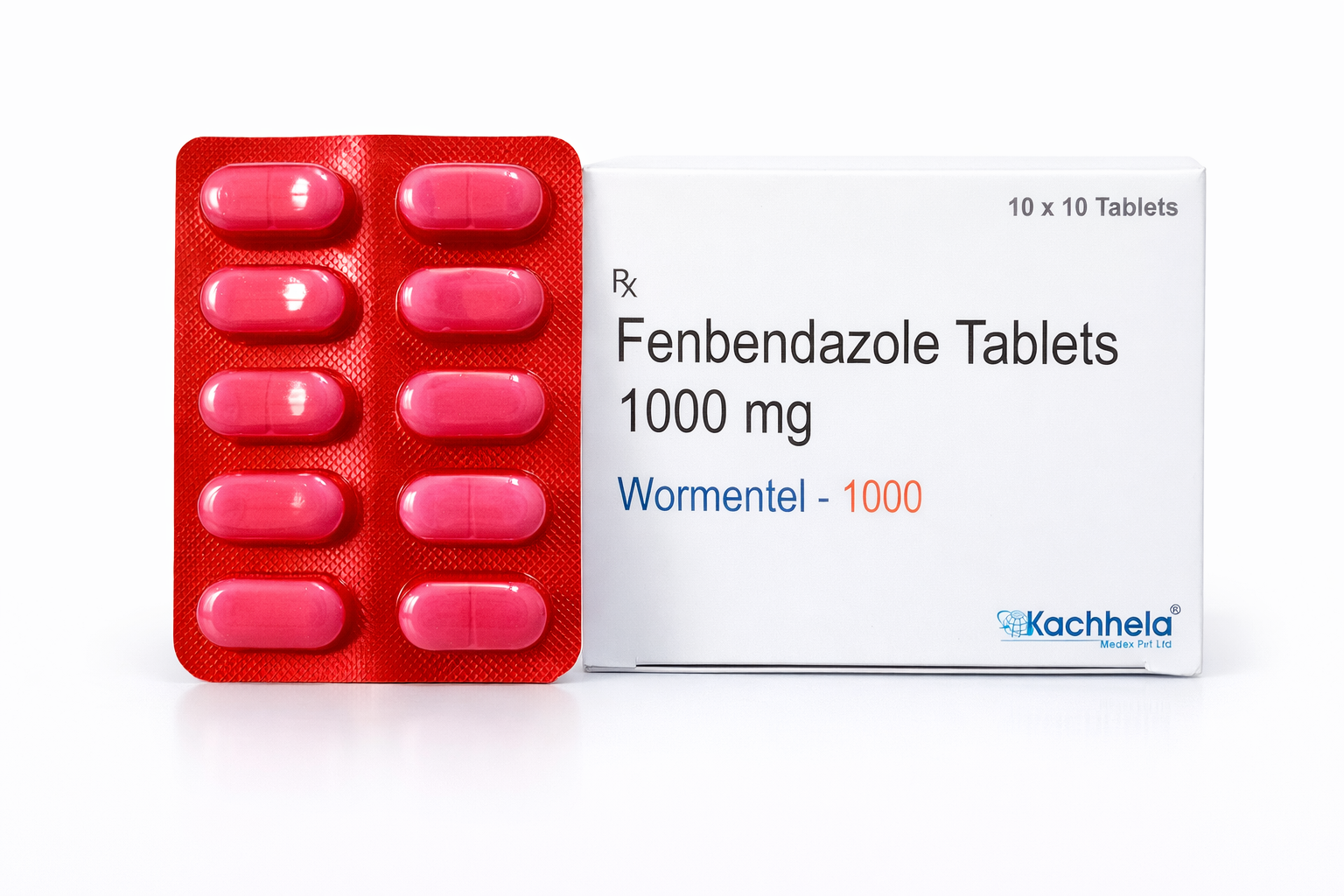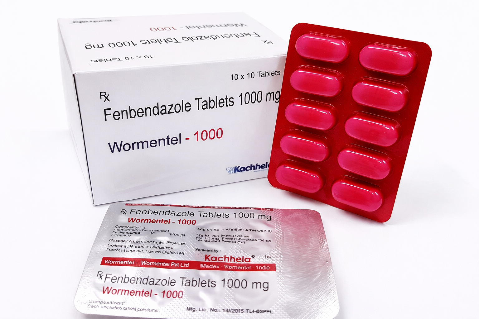 Wormentel 1000 contains Fenbendazole 1000 mg, offering broad-spectrum antiparasitic action for intestinal worms. Safe, effective, and fast-acting treatment for humans and animals.